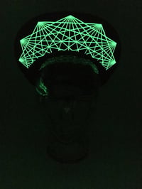 This SNAPBACK Hat I call Crystallized Consciousness is all hand printed and airbrushed. The crystals and under bill all glow in the dark. The background of the hat is all hand airbrushed with geometric triangles and space nebulas